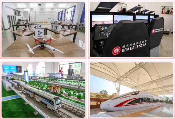 还建设了无人机应用技术实训室、城市轨道交通运营管理实训室、飞机机电设备维修实训基地、高铁客运乘务模拟舱、计算机机房等。在天航,学生到飞机、复兴号(高铁)上课成为日常。