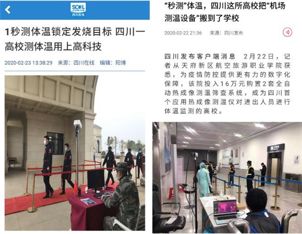 为疫情防控提供更有力的数字化保障,22日,我院花费16万元购置了两套全自动热成像测温筛查系统,成为四川首个热成像测温仪对进出人员进行体温监测的高校。这一消息被人民日报、中新网、川报观察、四川发布、四川在线、今日头条、搜狐网等媒体报道。
