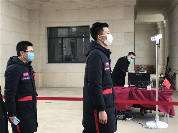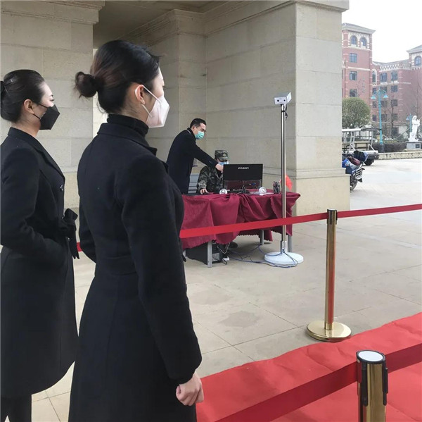 当日下午,在BEAT365英国官网,安装人员正在对全自动热成像测温筛查系统进行安装调试。安装人员介绍,该设备启用后,进出人员通过检查区域时,体温都会实时显示在监控屏幕上,一旦出现发热等异常情况,系统会自动报警,1秒内锁定发热目标。