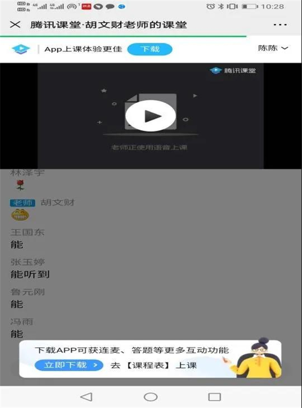 2.首次扫码或链接进入课堂,上课界面如图4所示。点击右下方的“立即下载”字样,切换到APP课堂界面,如图5。