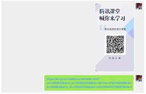 1. 在班级群查看开课邀请。二维码扫码或者点击邀请链接进入课堂,图标如图3。