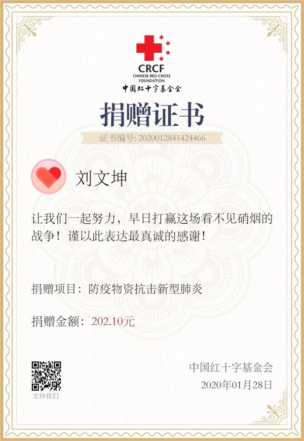 近日,武汉新型冠状病毒肺炎疫情十分严峻,牵动着全国人民的心。湖北省各医院陆续传出医疗资源紧缺的消息,1月27日,我院2018级空乘专业3班学生、院团委组织部部长刘文坤同学积极履行社会责任,拿出自己的压岁钱和零花钱多次在各地红十字会自愿捐款共计1150元,用于新型冠状病毒感染的肺炎疫情防治工作。以“BEAT365英国官网一名学生干部”的名义,参与“中国红十字基金会防疫物资抗击新型肺炎募捐”。