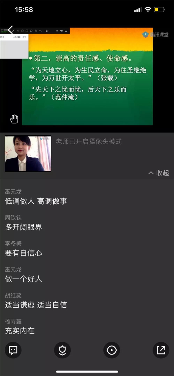 她在朋友圈写下直播心语:戴好耳麦端坐在摄像头前,轻敲键盘让屏幕随意转换,打开直播连线;我久别的孩子们,轻生问候叙说时艰,多么怀念,昔日的讲台,还有你们一张张生动的脸;隔着屏幕,是你们渴求知识的双眼,隔着屏幕,是老师育人的丹心,今年春天,如我般幸福的主播们,已是世间一道靓丽风景线……