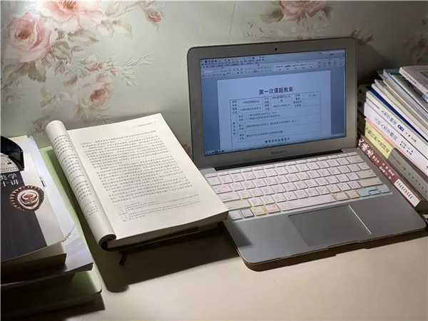 白一君介绍,刚开始决定此课堂采用录播形势完成教学任务,后来经过教研室同伴们的反复考量,最终采取线上直播的模式进行教学。在还没确定采用哪种平台前,请教已经开课了的前辈,跟周围的人讨论怎么装备上好网课,并在教研室进行反复测试。