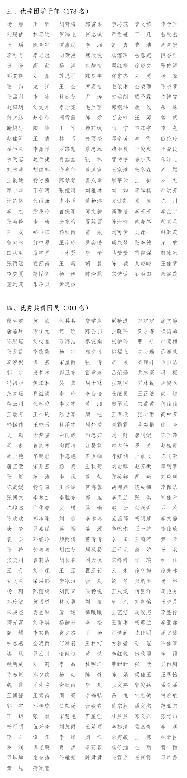 段生虎、黄欣等303名同学“优秀共青团员”荣誉称号;