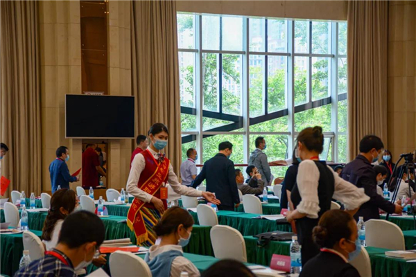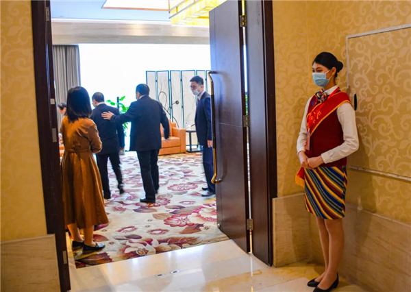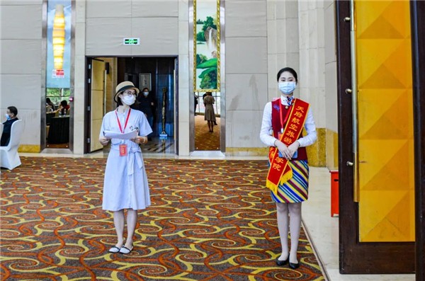 在本次会议签到处、贵宾厅休息室门外及会议选举环节,都能看到她们的身影。