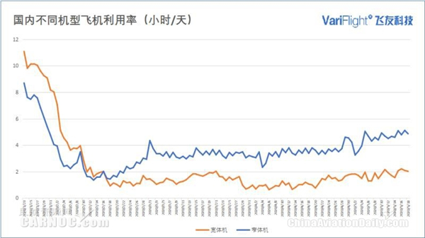 图:2020年1月1日-5月18日国内不同飞机利用率变化趋势。图片、 数据来源:飞友科技