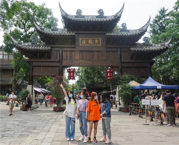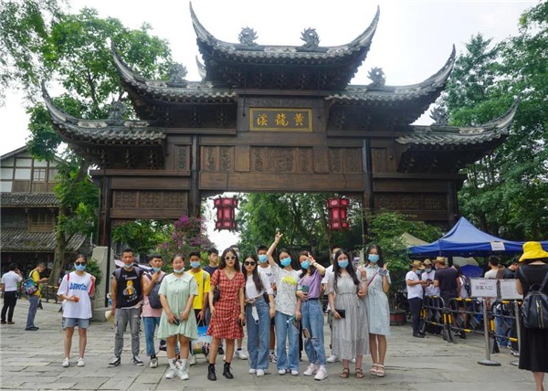 1日下午,在学院老师的带领下,单招考生们来到了国家4A级景区黄龙溪古镇游玩。刚到黄龙溪古镇入口处,同学们便兴奋的说“老师,帮我们拍张合照吧”!