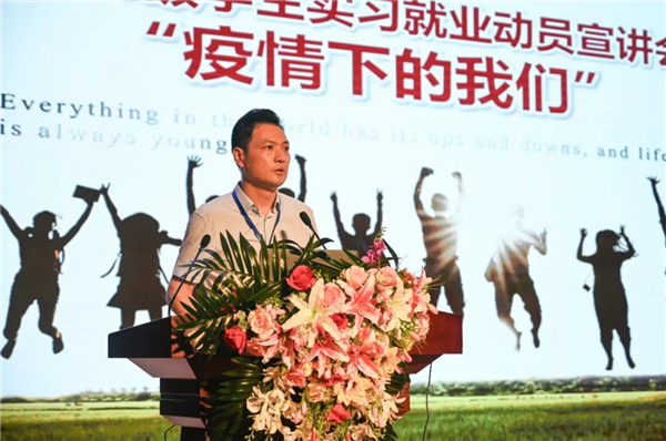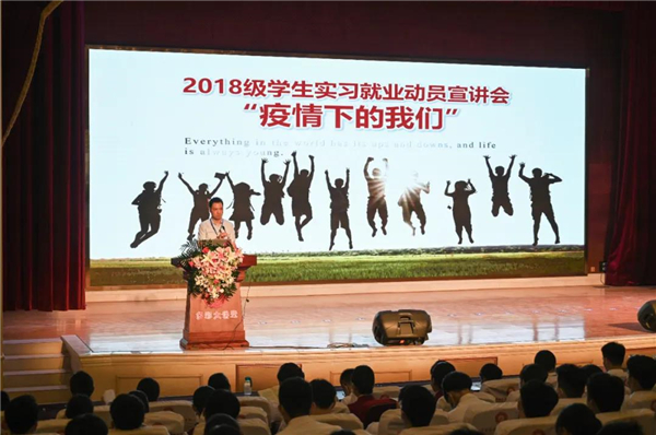 会议伊始,由高职学院王志鸿院长讲话,他说,新冠疫情波及全球,在不平凡的2020年里,学院认真落实上级教育部门“停课不停教,停课不停学”的要求,为同学们提供线上教育,疫情未能阻止学院与同学们的联系。他希望同学们要树立正确的就业观和择业观;学会感恩父母、感恩师生,珍惜实习就业机会,发扬天航学子的精神。