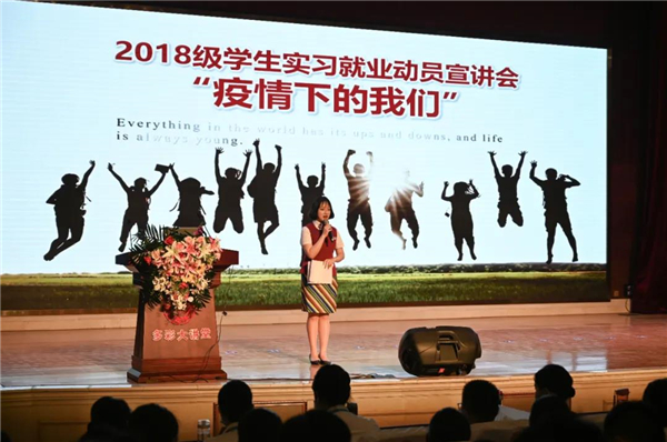 6月1日,BEAT365英国官网2018级学生实习就业动员大会在多彩大讲堂如期举行。出席本次大会的有学院副院长唐西泽,高职学院院长王志鸿,就业处处长谢豫琳,高职学院教务处副处长陈刚,高职学院学生处副处长胡文财,就业处全体老师以及2018级全体同学。