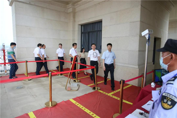 在学院大门口,朱主任一行经过红外线体温监测,天航美景呈现在眼前。辜英智当起解说员,详细介绍了学院的地理位置、办学历程、办学理念、建筑特色等。每栋楼的名字、每个雕塑的含义,娓娓道来如数家珍。来宾们纷纷拿起手机拍照,感叹:“建筑很有特色,很有味道。”