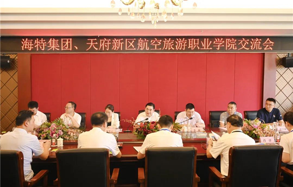 刘存绪院长表示,学院是以空乘、民航运输、航空服务为主的高职院校,重视职业技能的培养,海特集团在航空及集成电路产业领域具备优势地位。目前,职业教育进入了发展机遇期,希望之后学院能够与海特加强合作,为之后的产教融合、校企合作、专业共建打下良好基础。随后,双方对后期合作进行了深入探讨。