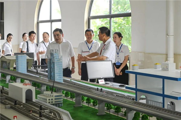 辜英智向李飚一行讲解了学院每栋楼的名字由来、建筑风格、地理位置等。并参观了学院实训中心的实训设备,多彩大讲堂、钟楼等特色建筑。