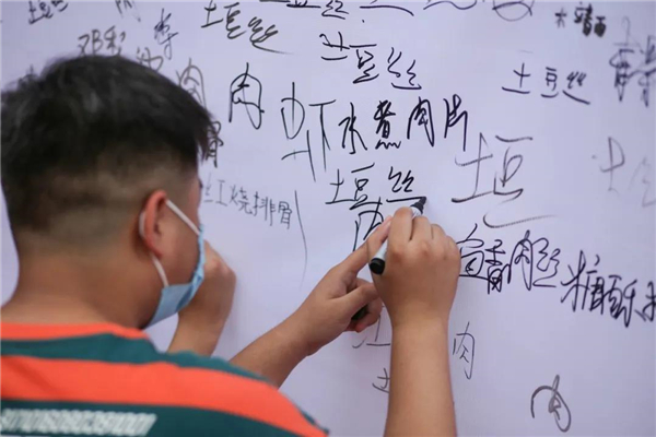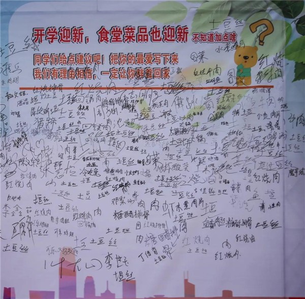 小编发现签到墙一侧食堂向新生公开征集菜谱,特别有意思的是,土豆丝居然登上新生菜谱榜首,看来这一届新生太好带了。