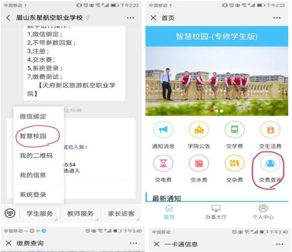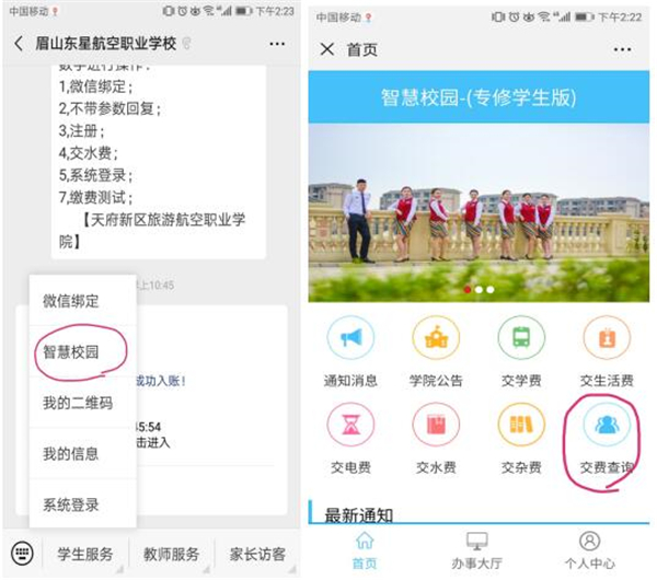 第四步:退出,重新进入智慧校园——办事大厅——交费查询——查询电费余额——交电费