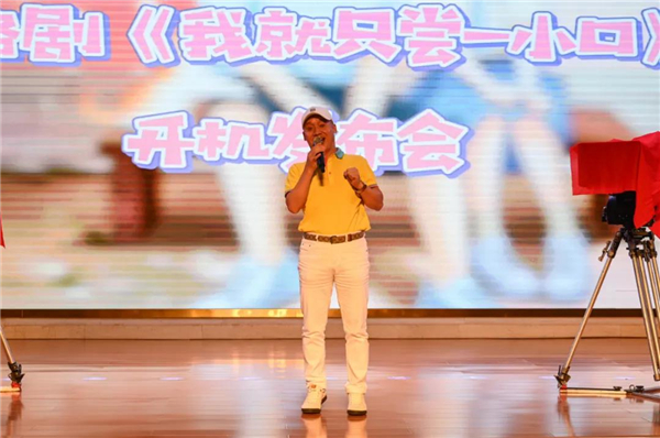 辜英智董事长对网络剧《我就只尝一小口》在我院正式开机表示热烈的祝贺!同时也表达了此次网剧开拍的重要意义,网剧也是一种新的艺术形式,在广大青少年观众中有着广泛的市场,易于传播。