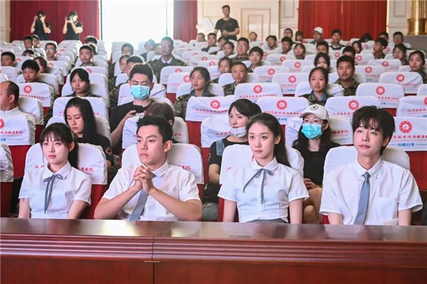 伴随着热烈的掌声,开机仪式圆满礼成,学院领导、剧组主创人员及主演合影留念。