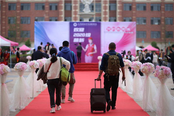 迎接他们的是学院“一条龙服务”。消毒、检查健康码、测体温……