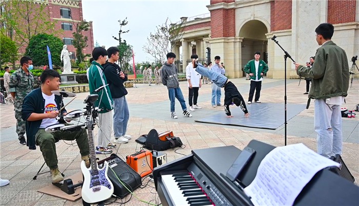 “该怎么去形容你最贴切,那什么跟你作比较才算特别……”“万花筒点缀你炫目的瞳孔,湛蓝天空会因为你而出现彩虹……”为迎接学弟学妹的到来,学院音乐社、动漫社与街舞社带来歌舞表演,引得路过的新生与家长驻足观看,拿出手机拍个不停。