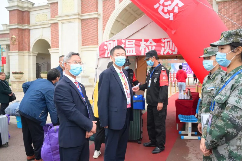 今年因为疫情,进入大门前,门口的保安师傅们检查健康码和录取通知书,并进行体温检测,给衣物行李消毒,引导新生们有序进入校园。