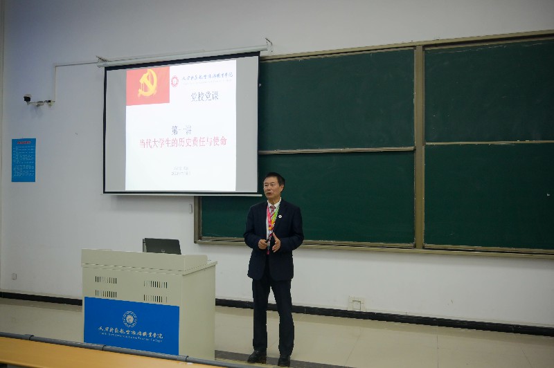 随后,学院院长刘存绪教授带来党课第一讲——《当代大学生的历史责任与使命》。习近平总书记在纪念五四运动100周年大会上号召:“新时代中国青年要珍惜这个时代、担负时代使命,在担当中历练,在尽责中成长”。面对在场的学员,作为当代大学生和青年教师,刘院长提出几点期望:一要树立远大理想,中国梦是全国各族人民的共同理想,更是新时代中国青年应该牢固树立的远大理想。二要有爱国情怀,让中国以更加自信的姿态,一步步走近世界舞台的中央。三要担当时代责任,在应对重大挑战、抵御重大风险的时候,迎难而上、挺身而出。四要勇于砥砺奋斗,要以正确的世界观、人生观、价值观来指导自己的选择。五要练就过硬本领,提高自身的综合素质,在学习中做到知识和实践的知行合一。六要锤炼品德修为,加强思想道德修养,做一个忠于祖国、忠于人民、品德高尚的先进青年。
