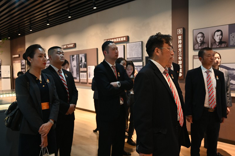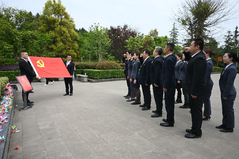 参观结束后,全体党员干部在陈毅塑像前,面对党旗,举起右拳,重温入党誓词,回顾初心使命,坚定理想信念。王元珑书记指出,此次教育活动让每位党员更直观的了解党的历史和光荣传统,亲身感受中国在党的领导下创造的光辉业绩。