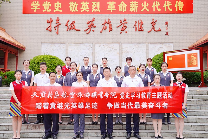 为深入开展党史学习教育,切实提高学习成效,进一步增强党组织的凝聚力和战斗力,激励党员干部继承和发扬党的光荣传统。5月14日,马克思主义学院(基础教学部)党支部、继教院党支部全体党员同志,知联会部分代表和我院“2021届省级优秀毕业生”代表一行25人,前往德阳市中江县黄继光纪念馆开展红色革命教育基地参观学习,追寻先辈足迹,传承红色基因。学院党委副书记、院长刘存绪,副院长尹析明,工会主席、统战部部长黄堂清参加活动。