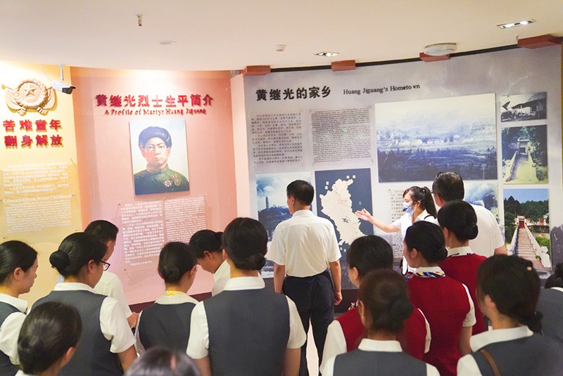 随后,在馆长和讲解员的带领下,全体同志参观了黄继光纪念馆展厅。一帧帧黑白泛黄的老照片,一件件有岁月痕迹的老物件,诉说着黄继光烈士从入伍参军到英勇牺牲的英雄事迹。