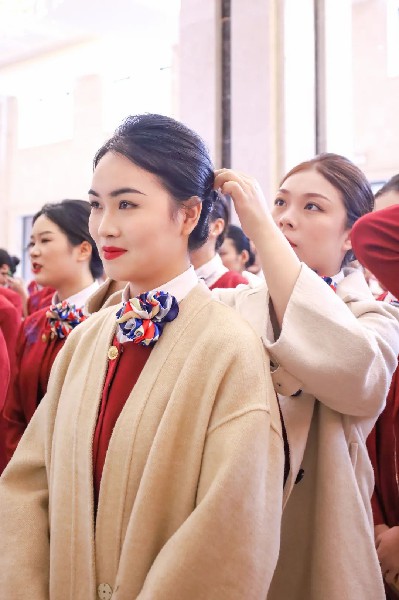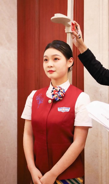 第一轮面试结束,初试合格的学生激动的捂着胸口表达了对新疆的喜爱,对乌鲁木齐航空的向往,随后依次进行身高测量、英语测试,在等待成绩的间隙,同学们互相为对方补妆,整理发型服饰。