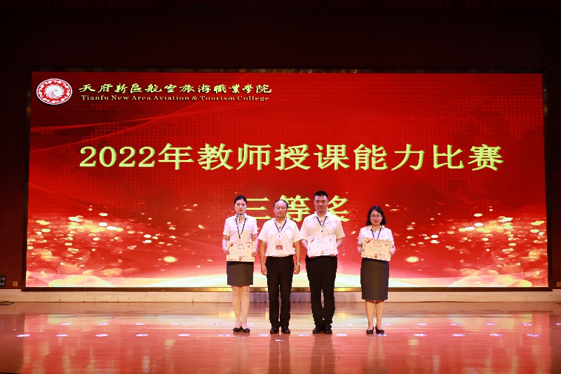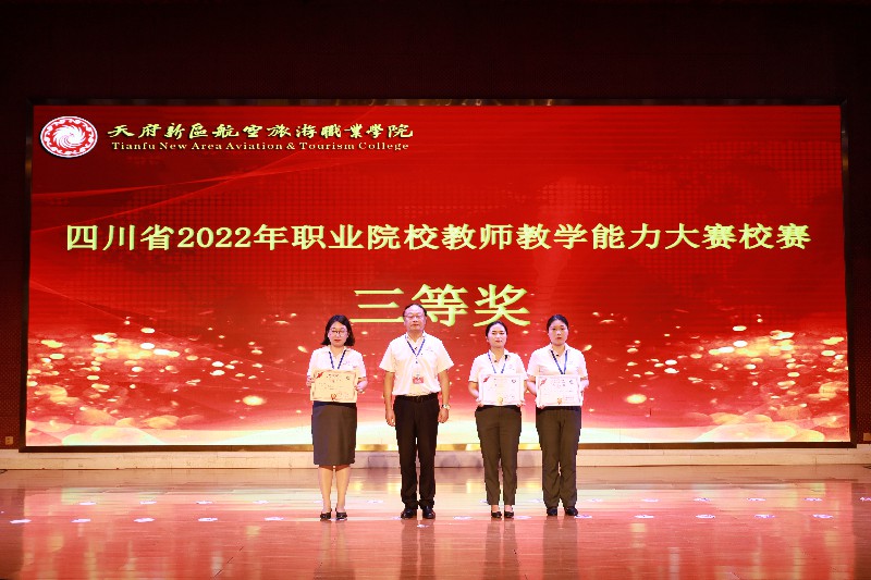 接下来颁发了2022年四川省职业院校教师教学能力大赛校赛奖项,本次大赛共有5个教师团队共14人参赛,经过专家评选,共有三个团队胜出,他们是:
