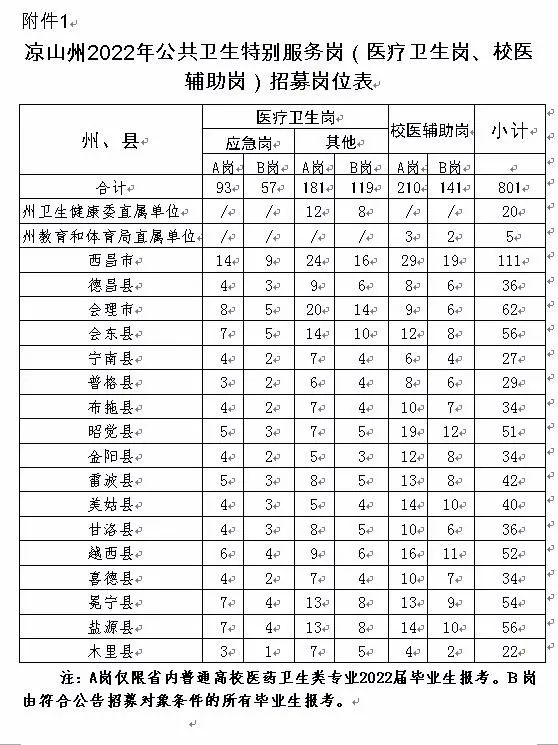 附件:1.凉山州公共卫生特别服务岗(医疗卫生岗、校医辅助岗)招募岗位表
