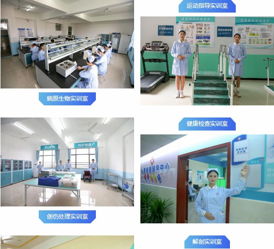 学院投资近1000万元,建有完善的实验实训室30余个。包含:生化实验室、试剂准备室、分子生物实验室、病原生物实验室、免疫学检测实验室、血液检验基础实验室、临床检验基础实训室、动植物检验检疫、生物药物检测、运动治疗实训室、物理因子治疗实训室、人体运动学实训室、中国传统康复实训室、言语治疗实训室、康复辅助器具实训室、专业治疗实训室、健康监测实训室、健康风险评估实训室、营养指导实训室、运动指导实训室、心理咨询与指导实训室等,为满足各专业技能实训提供了保障,学生技能训练提供了条件。