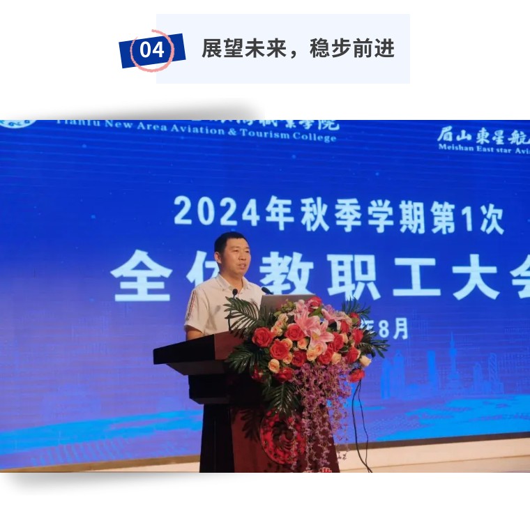 此次教职工大会的召开,不仅为新学期的工作定下了基调,也为全体教职工明确了目标和方向。全体天航教职工将以更加饱满的热情、更加务实的态度迎接新学期的挑战,共同推动学校高质量发展。