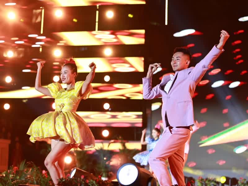 热场歌曲率先点燃全场!邱思远老师和王艺潼携手蓝莲花乐队震撼开唱 ,《你要跳舞吗》节奏明快 ,《奇迹再现》励志昂扬两曲连唱,完美拉开晚会序幕!