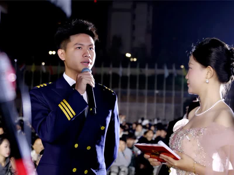 在晚会精彩节目间隙一个特别环节温暖上演,“最强辅导员”白瑞与空乘5班谢文镪同学共同为新生送上祝福,勉励同学们在新征程上勇往直前,在天航的舞台上绽放青春光彩。