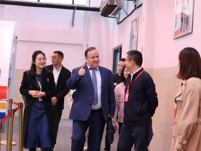 参观结束后,双方移步至会议室展开深入交流。刘阳校长首先致欢迎辞,对各位嘉宾的到来表示热烈欢迎,并详细介绍了学校的发展历程、专业特色以及未来规划。