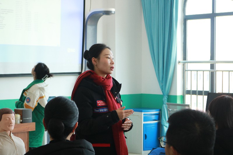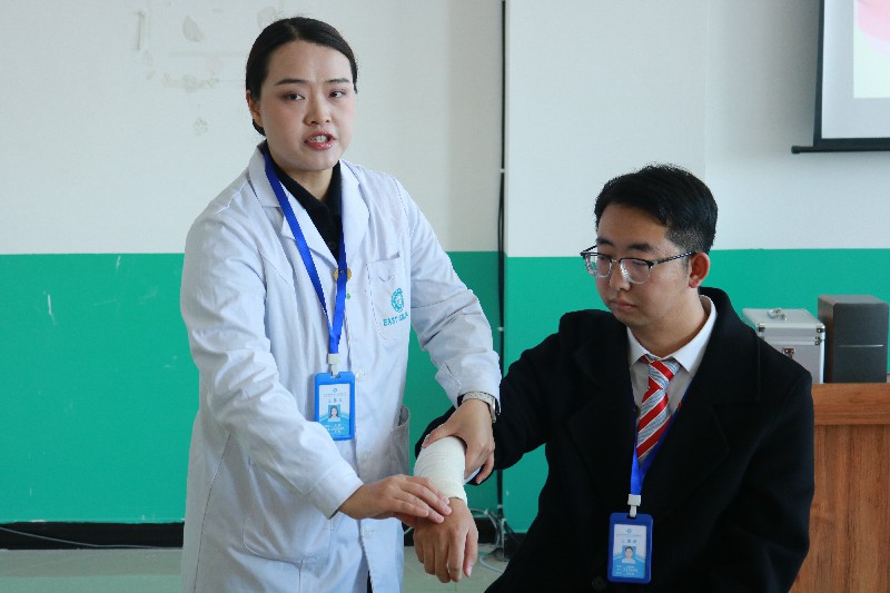活动伊始,卫生健康学院党总支副书记王玲发表致辞。她指出交通运输领域人员流动性大、突发情况较多,掌握急救技能对保障交通安全至关重要。并强调两院联合开展此次活动,既是专业优势的互补,更是责任担当的体现。希望全体参与者以“人人学急救、急救为人人”为目标,将安全意识融入日常,为构建平安校园、服务社会贡献力量。
