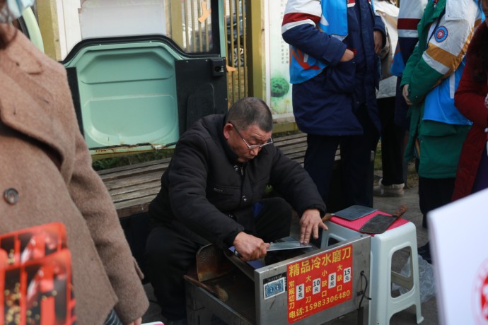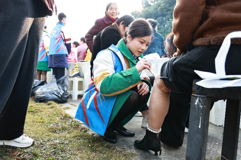 在机动志愿服务点位上,志愿者们更是展现出高度的灵活性与专业性。艾灸志愿服务点位前,志愿者们协助专业艾灸师准备器具、调配艾绒,同时向围观群众耐心讲解艾灸的原理、功效及适用人群;他们一边引导群众有序体验,一边普及中医养生知识,让群众在感受温暖的同时,也领略到传统中医文化的博大精深,现场弥漫着艾草清香与温馨氛围 ;在小家电维修点位上,具备专业知识的志愿者们认真检查每一件送来的小家电,凭借精湛技艺和负责态度,为居民解决实际问题,赢得阵阵称赞;在缝补点位上,志愿者们飞针走线,为有需求的群众修补衣物,一针一线都饱含温暖与关怀,让群众感受到贴心服务;在磨刀点位前,志愿者们虚心向老师傅学习技巧,细致为居民磨刀,让钝刀重焕锋利,现场不时传来居民的感谢声。