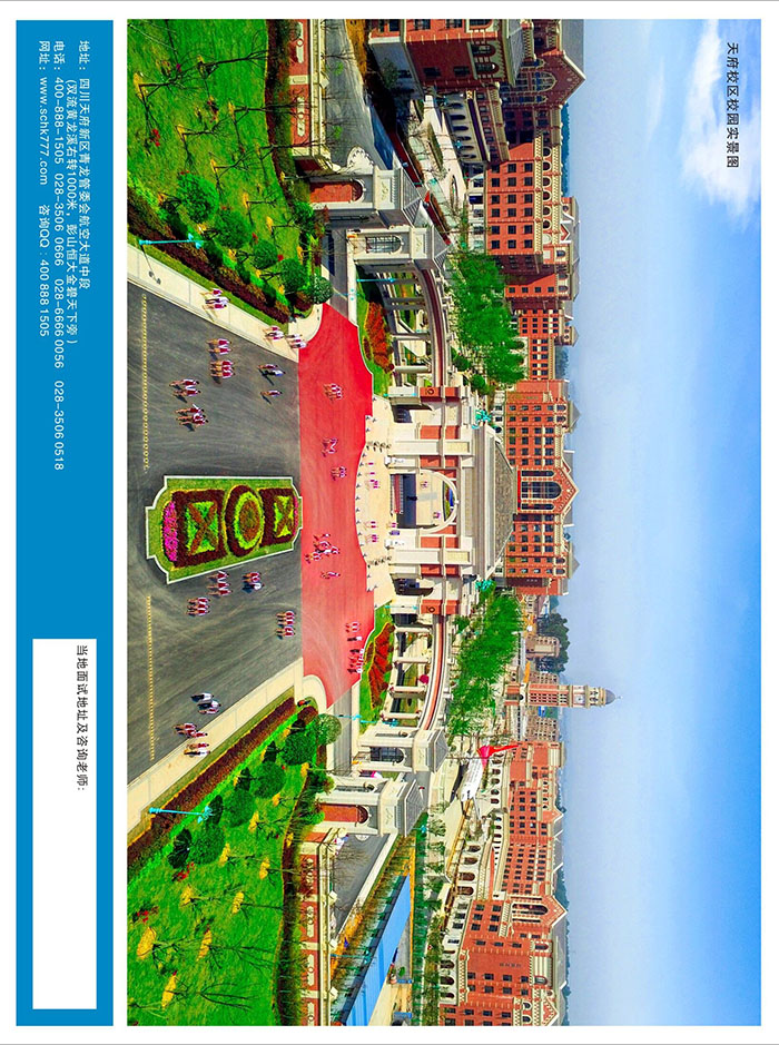 学院位于四川天府新区眉山管委会航空大道中段,距离国家4A级旅游景区--双流黄龙溪古镇2000米, 到双流国际机场30分钟车程,交通十分便捷。学院建设总投资近8亿元,可容纳在校学生1.2万余人。 校园整体风貌博采欧美名校--哈佛、牛津、哥伦比亚大学之精华,风景优美、文化氛围浓郁,是一所景观学校、园林学校、影视拍摄基地。
