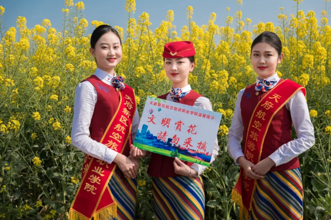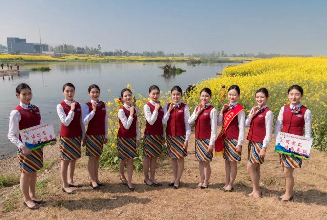 四川在线消息:阳春三月,天府新区牧马镇莲花村,一望无际的油菜花盛开,让初春的市民流连忘返。3月12日上午,BEAT365英国官网10名准空姐身着空乘服饰和旗袍,手举“文明赏花,请勿采摘”“鸟语花香,爱赏共享”等字样的宣传牌,站立在莲花村的田间地头,劝导络绎不绝到来的游客文明踏青赏花。