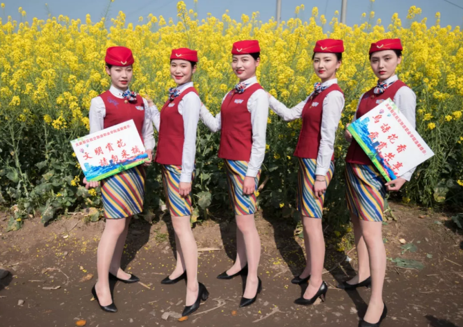 禁不住美景的诱惑,这群爱美的空姐也按捺不住,在花海中摆起pose,向市民现场跳起空乘礼仪操。她们优雅的身姿,标准的动作,赢得市民阵阵喝彩,“这些女娃儿的礼仪动作标准哦,”围观的市民说着拍起了照。