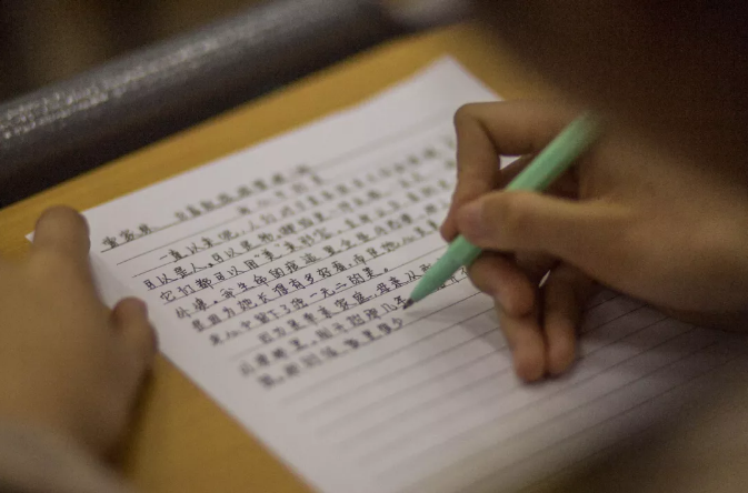 同学们认真书写文章