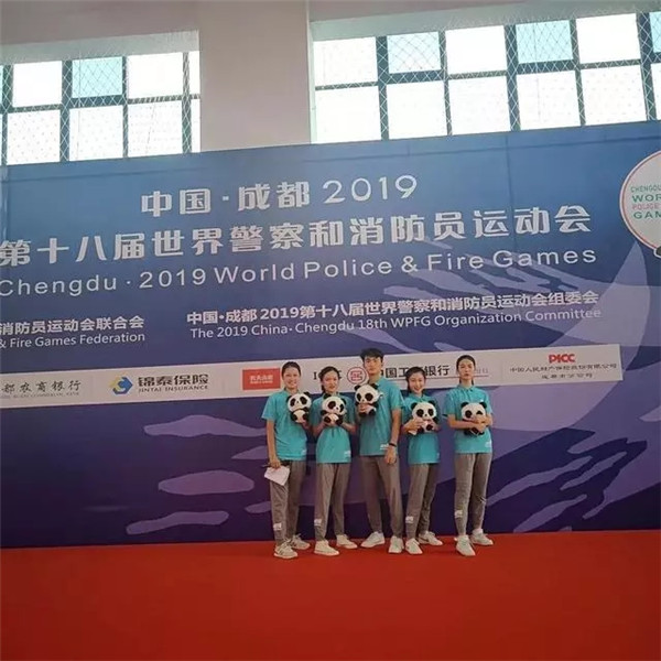 在举世瞩目的世警会上,天航学生分别担任篮球馆和足球馆的礼仪服务志愿者工作,耿庆玲和陈巧燕同学为篮球馆和足球馆礼仪组组长。同时,陈巧燕担任了颁奖仪式上的中文主持。