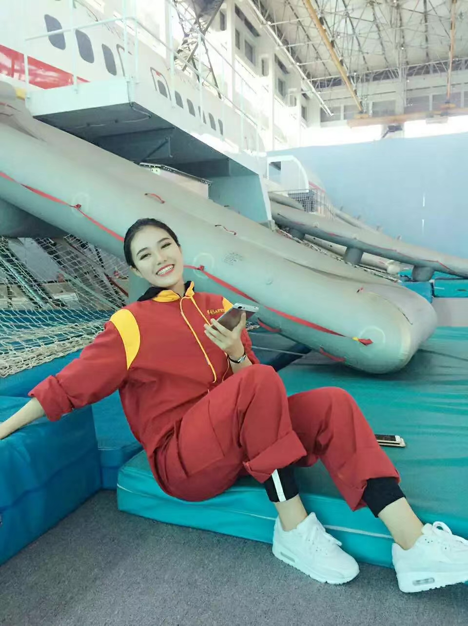问起逐梦路程,白咏灵说:“在培训期间,不仅要学客舱服务基本技能、规范标准的仪容仪表,还要对飞机机型,飞行知识有足够的了解;大学时我的专业是空中乘务,学院开设的专业课程跟培训期学习的课程内容精髓大致相同。在学校学习期间,客舱设施与服务、民航客舱应急与程序等专业课程的学习,让我学习到更多作为乘务学员的岗位责任意识与素养;除此之外,我还积极参与学校社团活动,这不仅丰富了我的校园生活,也增强了我的团队协作能力;在校三年的学习和锻炼让我更快的适应乘务员培训,并且顺利过关。”