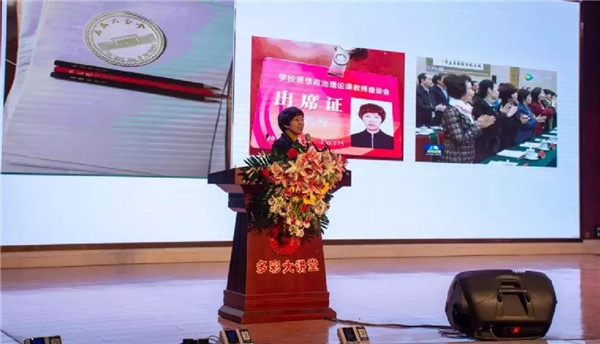 太扎姆教授从“汇报学校思想政治理论课教师座谈会精神”“理直气壮开好思政课”“做有信仰的良师益友”三个方面,向天航教职工们讲解如何做一个有情怀的教育人。她认为教师队伍要做到“四有”:有理想信念、有道德情操、有扎实学识、有仁爱之心。