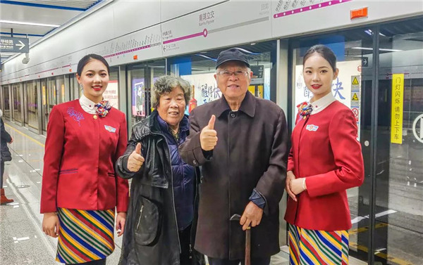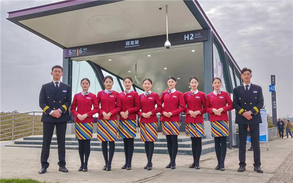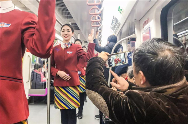 来川旅游的孙女士很惊讶:“5号线档次高哦,乘务员都换成空姐了。”也有不少乘客称赞:“这些女娃儿长得好乖,漂亮又有气质,在地铁体验到坐飞机的感觉,这一趟真心值!”空姐们的一颦一笑、举手投足知性典雅、高挑妩媚的身材,引来不少乘客围观欣赏,有热情的更是搭讪求合影。