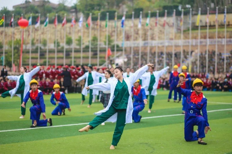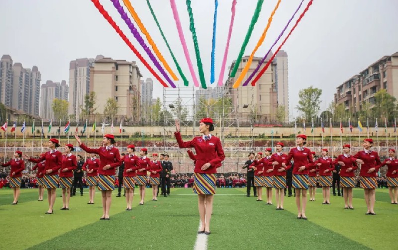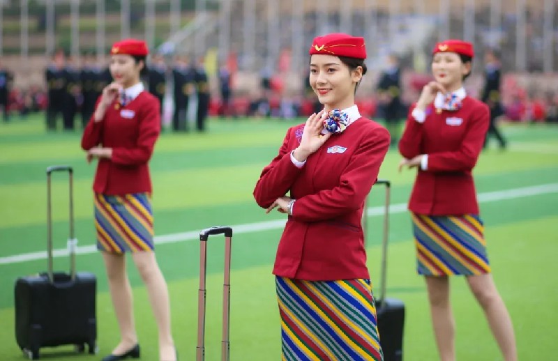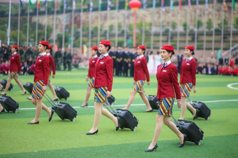 庆典仪式上,天航学子们美轮美奂的舞姿和阳刚之气的精彩节目堪比大片。准空姐空少带来《航空礼仪展示》,整齐划一的动作,甜美的微笑,将学院所学完美地呈现给新生学子。