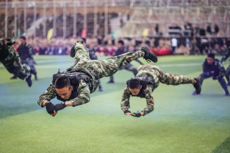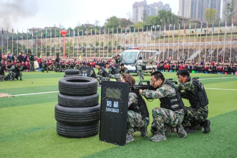 单手劈砖、解救人质……在《军体技能展示》节目中,军体教官和校卫队进行战术训练、防爆应急和人质解救演练。以饱满的精神面貌,顽强的意志品质和严谨的工作作风展示了当代大学生的使命与担当。