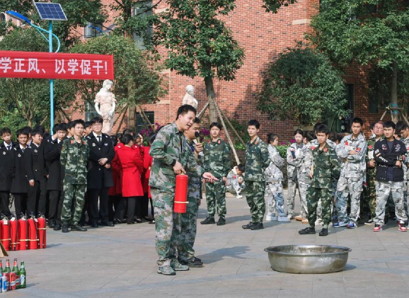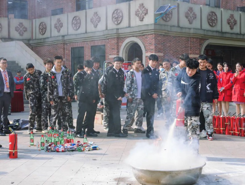 安保宿管处保卫科将收缴火灾违禁物品搬出并现场进行焚烧销毁,全体师生积极参与实操,体验灭火并掌握灭火技能,并呼吁同学们,切勿使用违规物品,保证同学及自身安全。