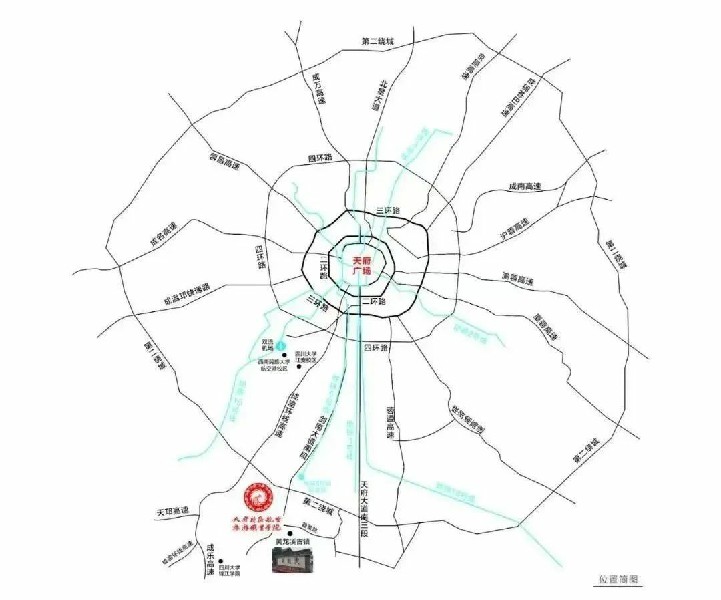 学院位于四川省天府新区剑南大道南延线航空大道中段168号,距离国家4A级旅游景区--黄龙溪古镇3公里,到双流国际机场19公里,交通十分便捷。学院建筑面积近20万平方米,可容纳在校学生1.4万人。校园整体风貌博采欧美名校——哈佛、牛津、哥伦比亚大学之精华,风景优美、文化氛围浓郁,集景观学校、园林学校和影视拍摄基地特色于一体。